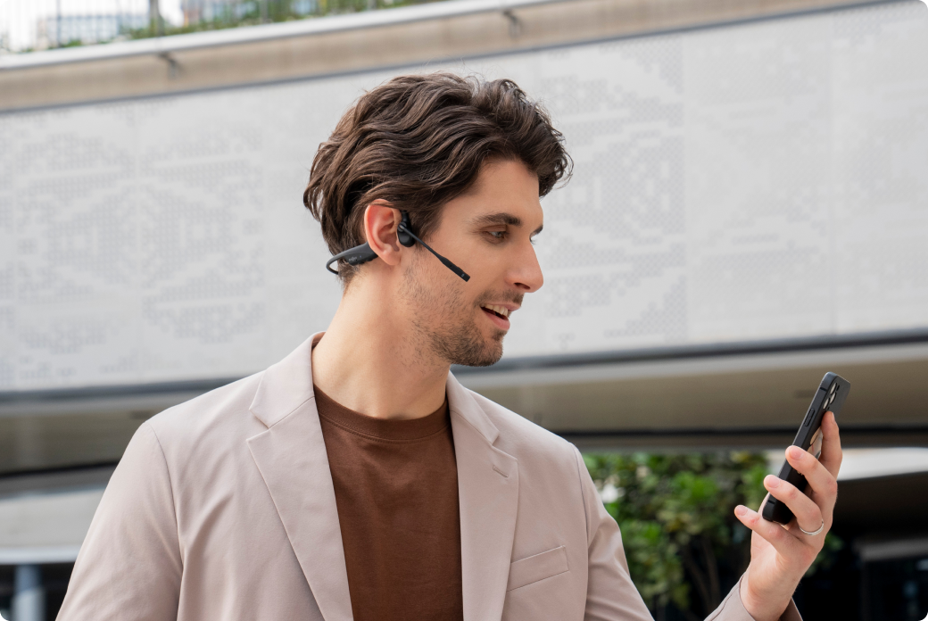 Unlike traditional headsets that cover your ears and cut you off from your surroundings, OpenComm2's open-ear design keeps you connected to the world without compromising on comfort or audio quality.