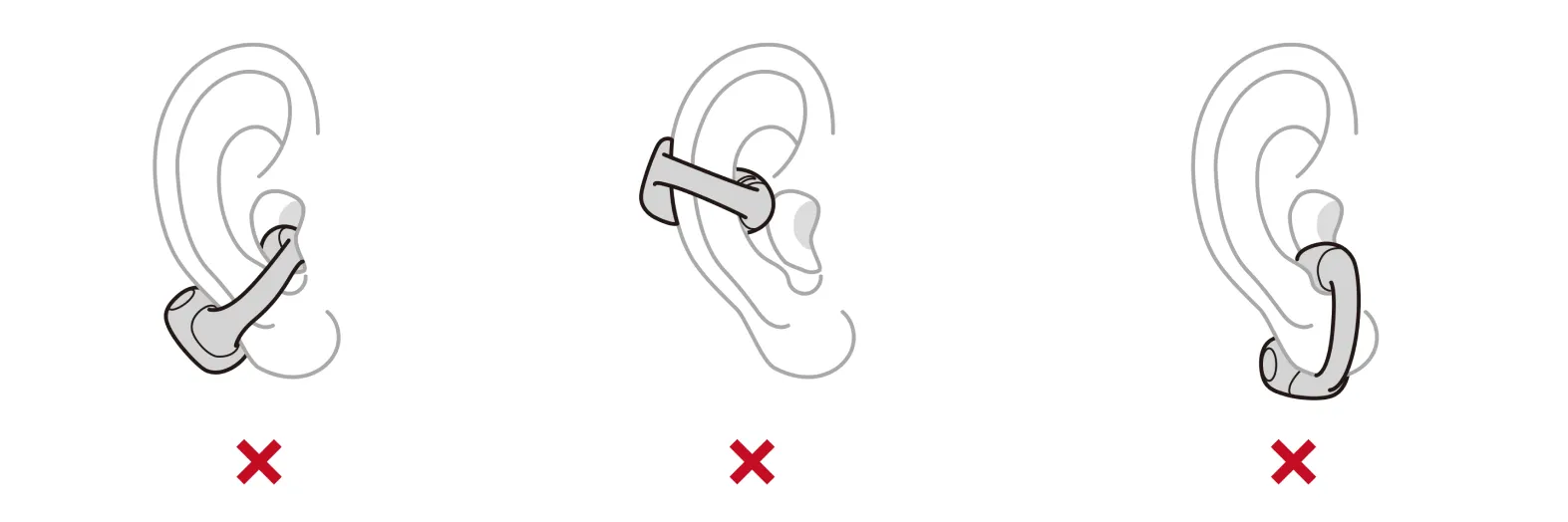 2. When putting on the earbuds, open them gently and avoid pulling them apart too much. Use one hand to follow the steps above. Also, refrain from bending the JointArc excessively when the earbuds are not in use.