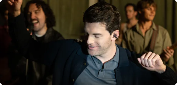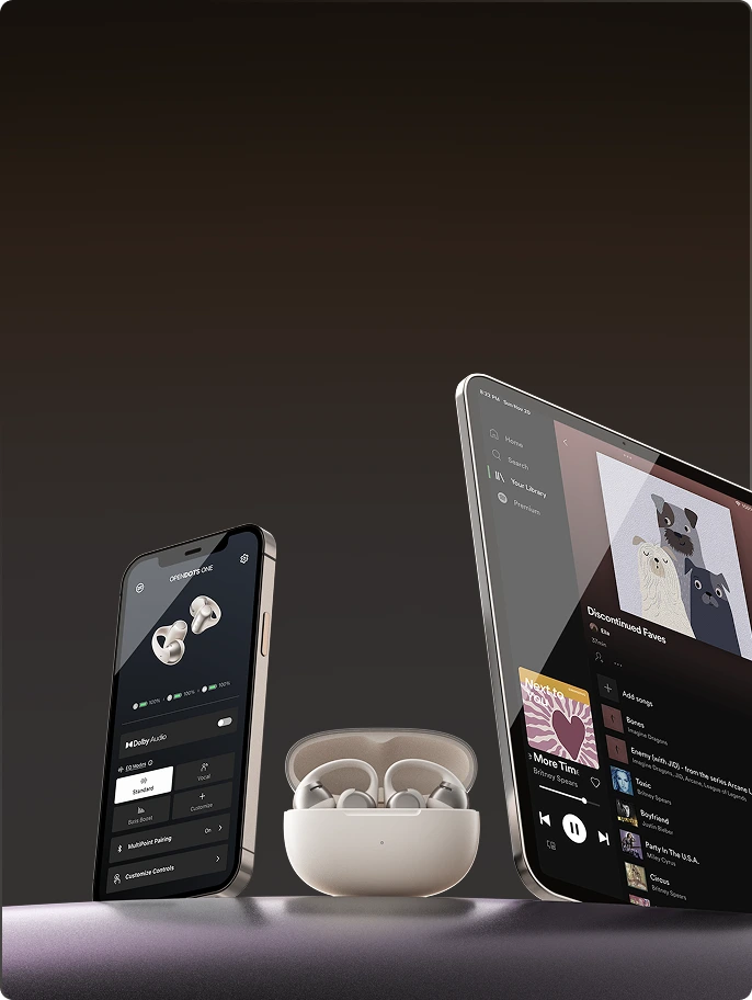 With our advanced Dynamic Ear Detection Technology, OpenDots ONE automatically recognises which earbud is in which ear, allowing for interchangeable wear. Simply clip them on and hit play. When you're done, place the earbuds in either spot of the charging case – no need to worry about which side is which.
