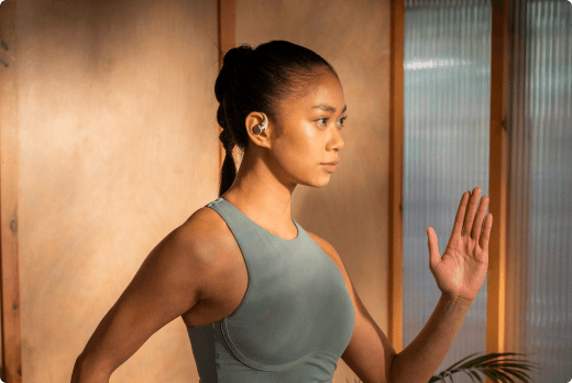 OpenFit features IP54 water resistance and is designed with a double-layer waterproof steel mesh and gauze for additional protection and enhanced sound performance.7 During your sweatiest of workout sessions, keep enjoying your music or audiobook worry-free.